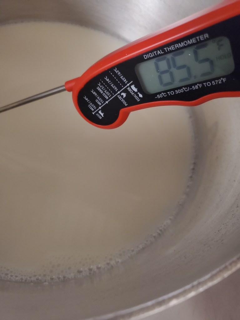 “Dear customers. We apologize and regret that we are unable to offer the creole cream cheesecake. We do not make this item in store nor is it purchased from our normal vendors. This item is made by a little old lady who lives in Deridder, (central Louisiana) who brings her items to us, and we buy all that she has. Unfortunately, the creole cream cheese sells out within 12 hours. We do not know when she will be back or if she will ever come back. We do not know how much she will bring, if she ever comes back. So please forgive us and we thank you for your patronage.” It goes without saying, I was totally heartbroken. This is when I decided to take matters into my own hands.  I began researching the making of this cheese and began experimenting with its creation. There are not many variations in how to make this, but they all have the same ingredients, skim milk, buttermilk, and a rennet tablet. The rennet tablet is what starts the fermentation process. I have made this recipe many times now and the results are consistently awesome. So now I sharing this simple recipe so that you too may enjoy this hard to find creole cream cheese and maybe even create fond memories that ill last a lifetime.